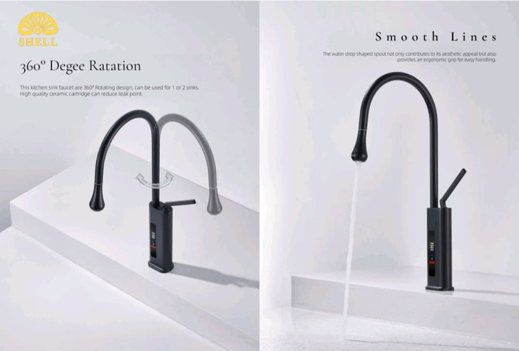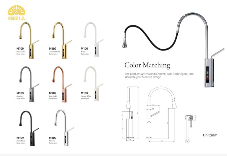 شیر ظرفشویی شاوری ( فیلتر دار / نمایشگر / سردوش برنجی / طرح مینیمال ) برند Shell کد M109در رنگ های کروم ، دودی ، مشکی ، کرم ، سفید ، طلایی مات و طلایی براق موجود می باشد .