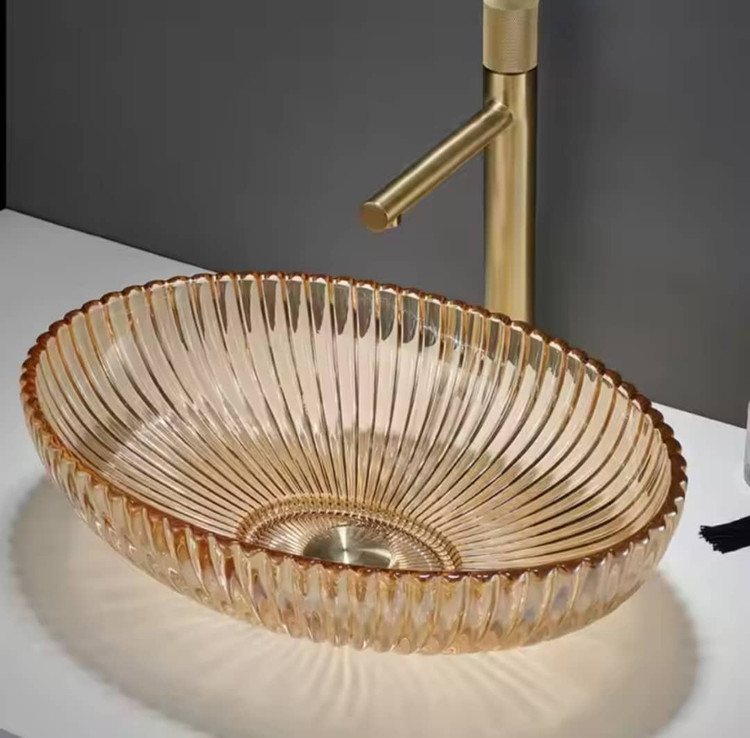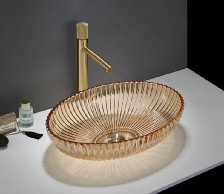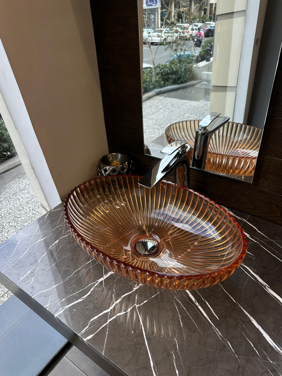 کاسه روشویی کریستال وارداتی از جنس شیشه و دایره ای شکل است.
