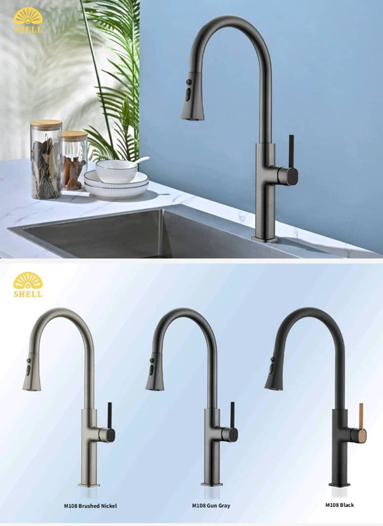 شیر ظرفشویی شاوری (فیلتر دار ) برند Shell کد M108 در رنگ های نیکل ، دودی و مشکی موجود می باشد .